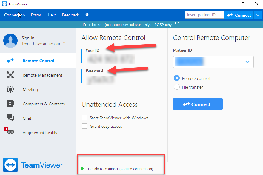 En donde dice "Allow Remote Control" hay un campo que se llama "Your ID" y otro que dice "Password" (en donde apunta las flechas en la imanen de abajo).