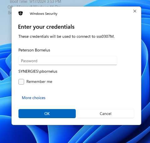 - En la ventana emergente, ingrese las credenciales de Windows proporcionadas para la estación de trabajo en el área de producción.