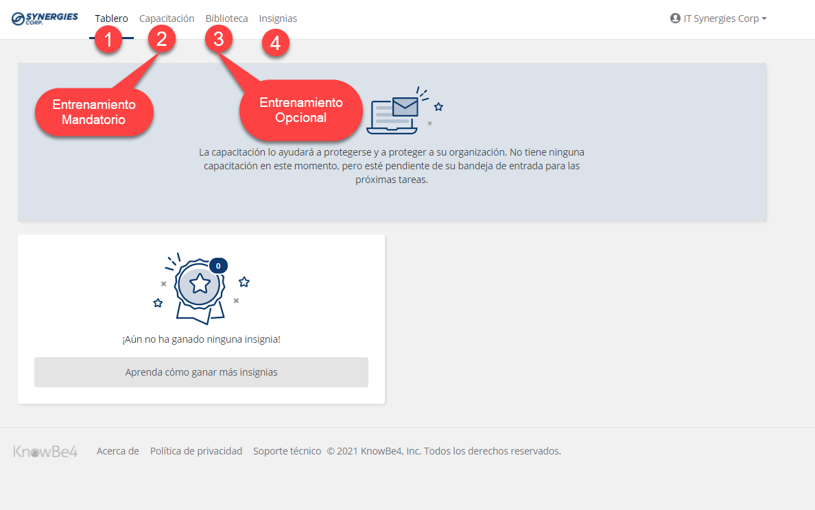 La plataforma de entrenamiento de Knowbe4 es la plataforma utilizada por el departamento de IT para realizar concientizaciones de seguridad y entrenamientos cortos para personal administrativo, relacionados con el departamento de IT.